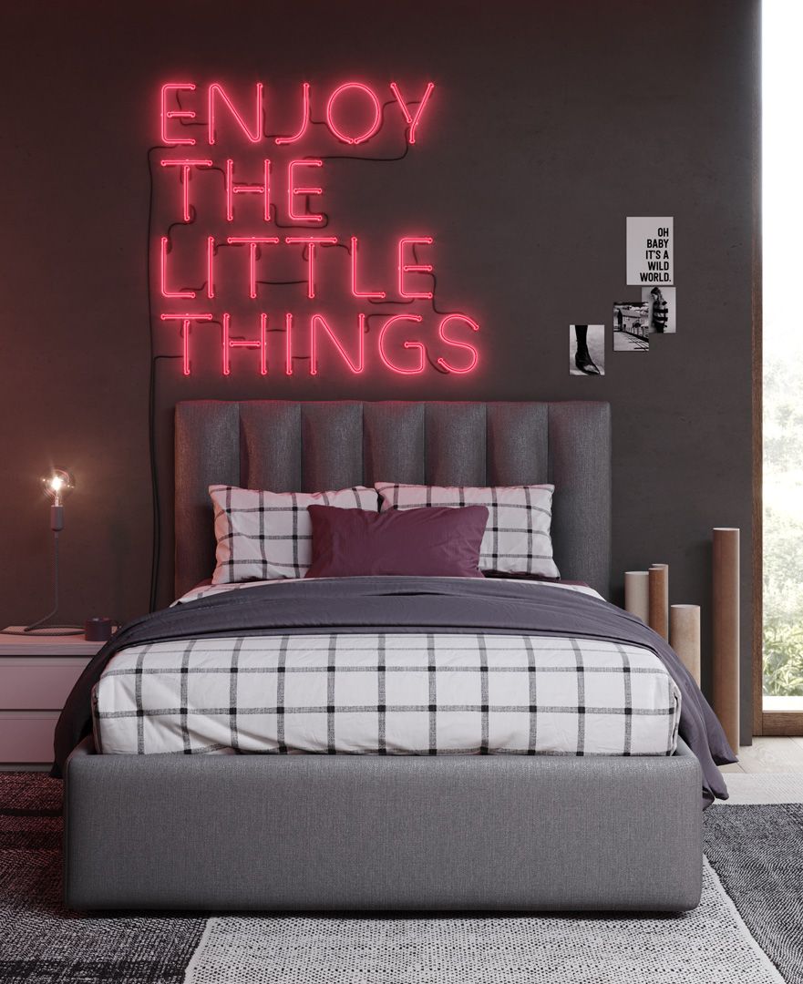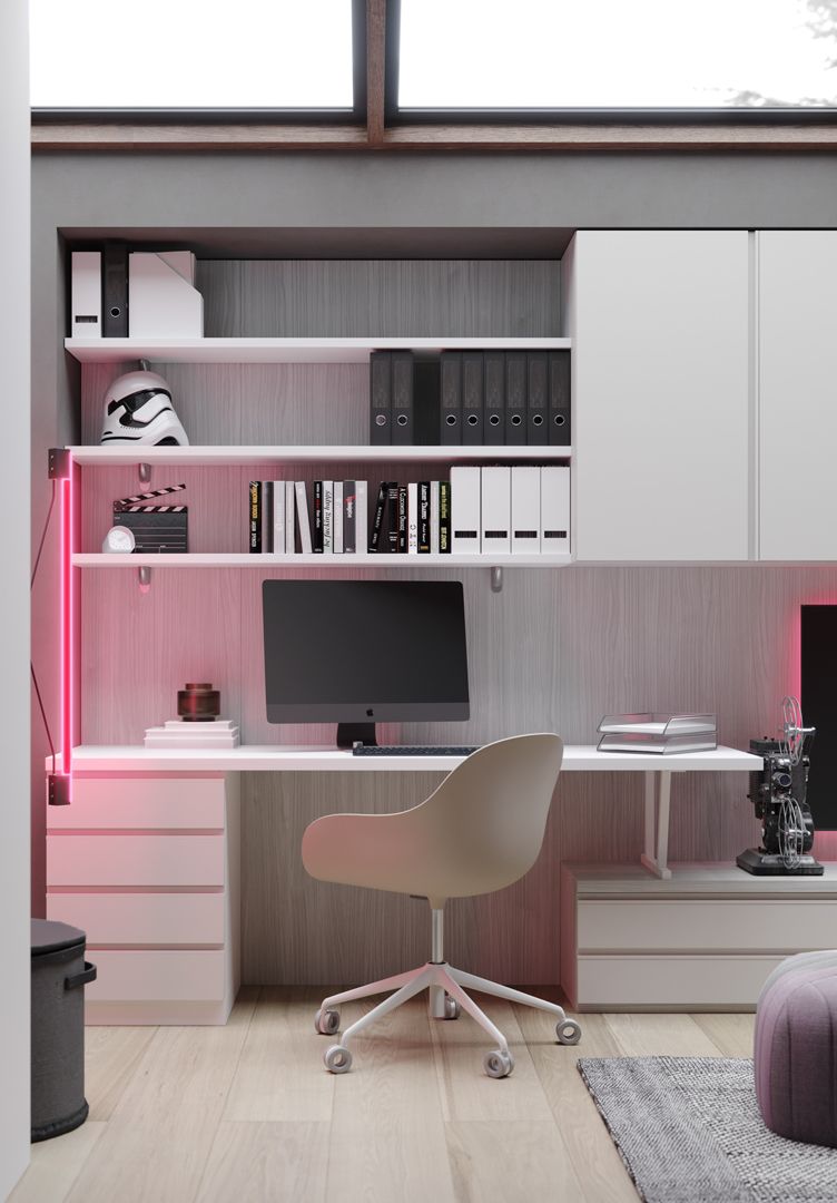 Una proposta pratica da vivere ogni giorno: la camera si distingue per il suo stile urban e minimale, con armadio battente dotato di cabina ad angolo e un’ampia scrivania, ideale per lo studio e il tempo libero. Un ambiente contemporaneo che risponde perfettamente alle esigenze dei più giovani.