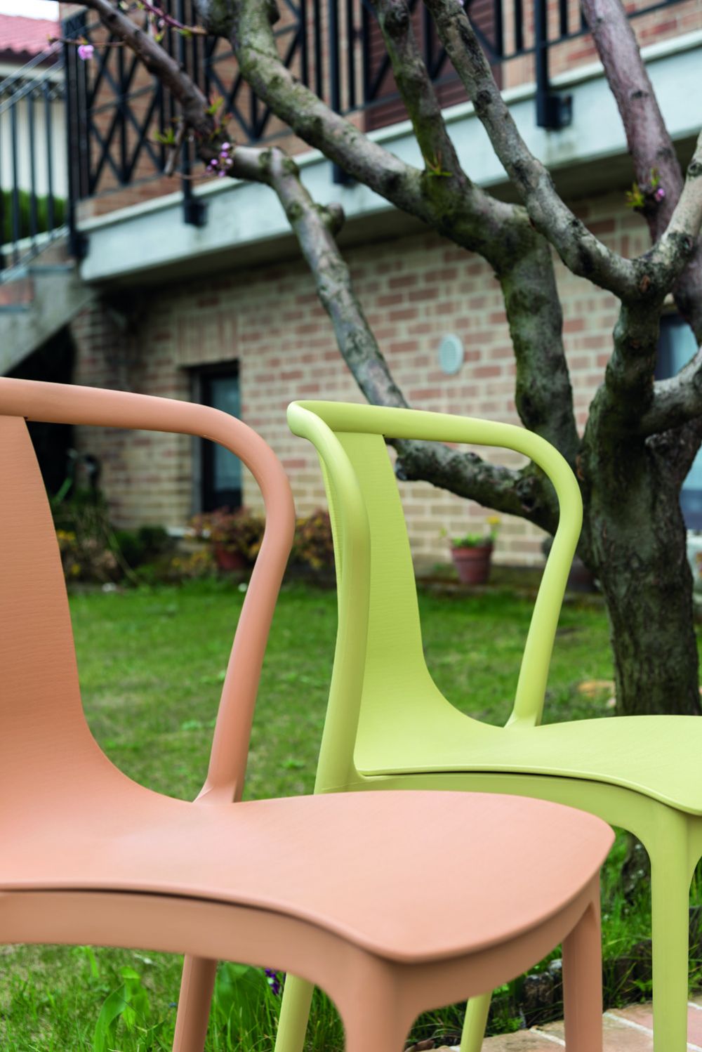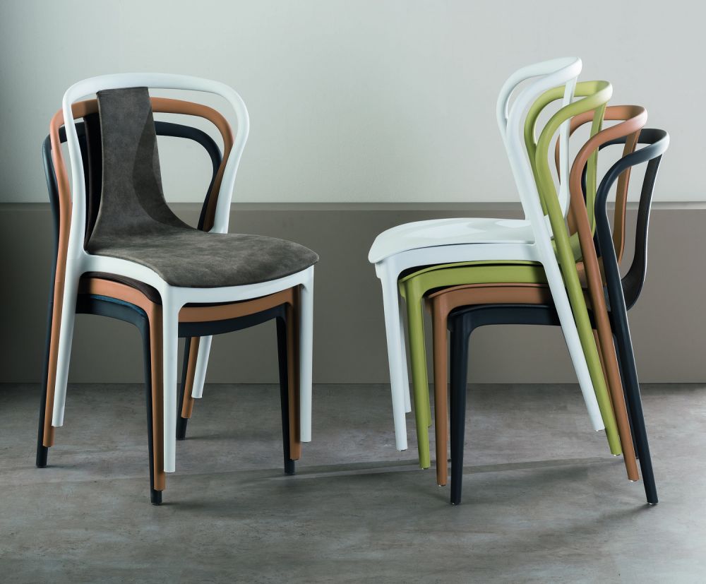 La sedia Arisa di GIPI Le Sedie è una soluzione impilabile in polipropilene rinforzato con fibra di vetro, resistente e ideale anche per l’uso esterno.