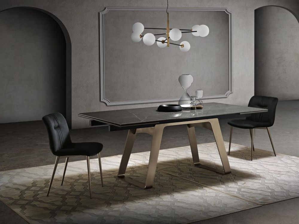 Aron è un tavolo allungabile con gambe in metallo e un pratico meccanismo di scorrimento che permette di estendere il piano fino alla lunghezza desiderata, rendendolo ideale per case e uffici. Le gambe dalla forma arrotondata e morbida si integrano armoniosamente negli ambienti moderni, unendo design e funzionalità in un’unica soluzione.